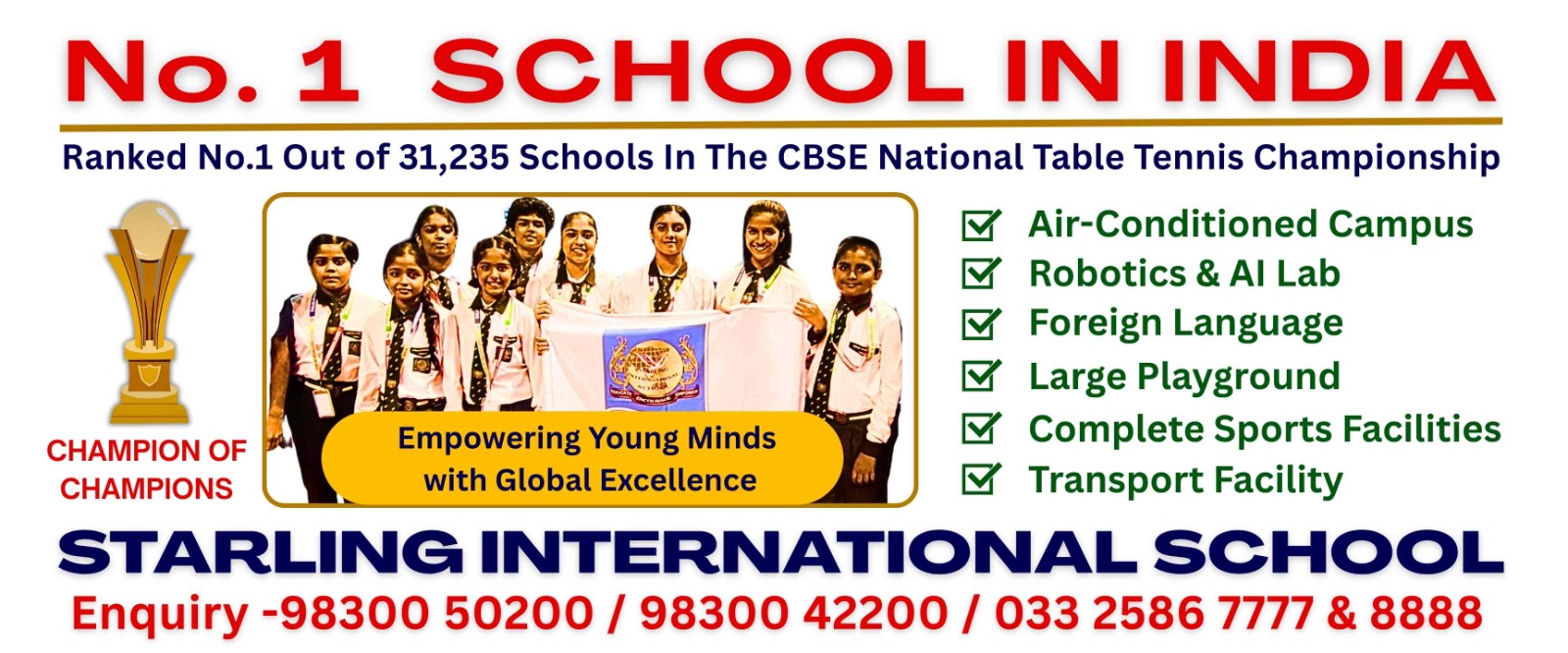 We are proud to announce that our school has been ranked No. 1 out of 31,235 schools across India in the CBSE National Table Tennis Championship — a remarkable achievement that reflects our unwavering commitment to excellence in sports.